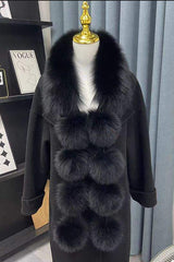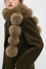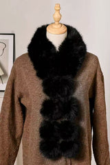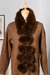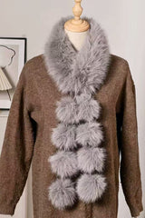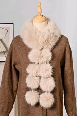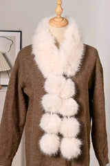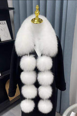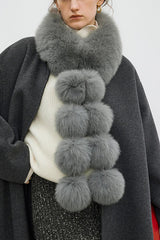 Stylish and warm fox fur shawl and scarf with pom-poms