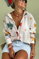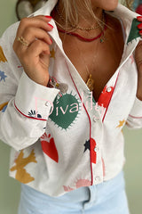 - Classic long-sleeved collared shirt featuring a creative themed print. Style this shirt for a glamorous summer look.