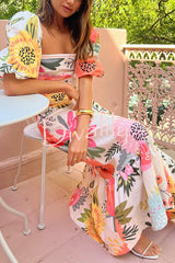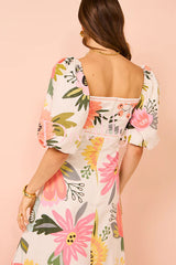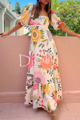 Looking for sunshine floral print square neck bubble sleeve maxi dress