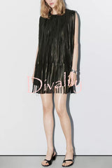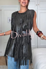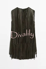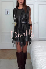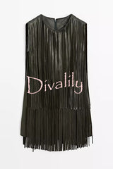 Modern times faux leather layered tassel design sleeveless h-line mini dress