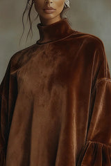 Fashionable velvet leopard print loose-fitting turtleneck long-sleeved mini dress