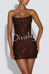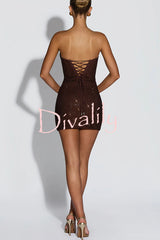 Lindsay sequin pleated cowl scooped neckline back lace-up strapless mini dress