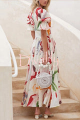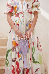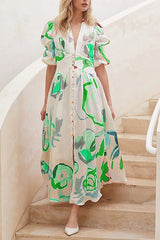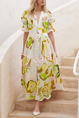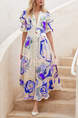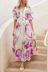 Lover's gaze watercolor floral printed puff sleeve button maxi dress