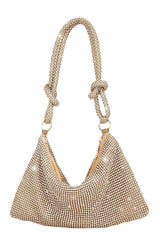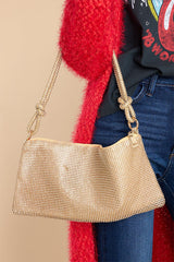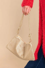 I can't help it, the City Drives me to add a little sparkle to my night time look! Tonight, I'm accessorizing with this shimmering gold beaded bag! It's a pretty glamorous touch, don't you agree? This mesh bag features rhinestone detailing throughout, two knots on either size of the strap, one pocket on the inside and a zipper closure. ? Measures 12.6" in length and 7.3" in height.