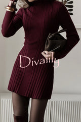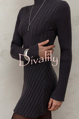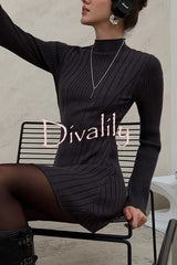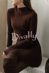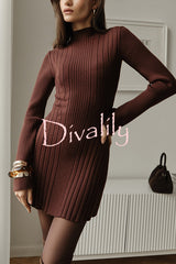 Solid color long-sleeved slim-fit elegant knitted mini dress