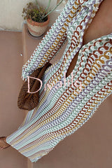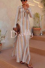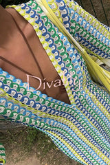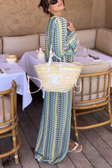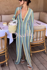 Bondi beach knit colorful wave print long sleeve vacation maxi dress