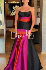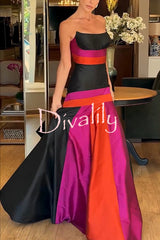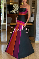 Reina satin color-block strapless fishtail flared hem porm maxi dress