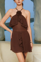 Solid color floral embellished halter neck slim-fit mini dress
