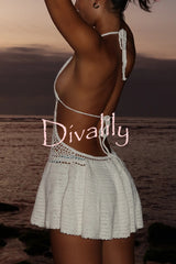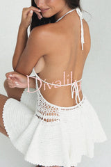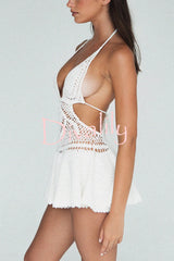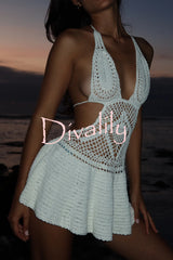 Solid color halter neck openwork knitted cover-up mini dress