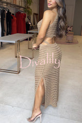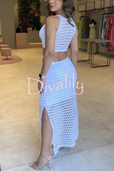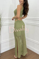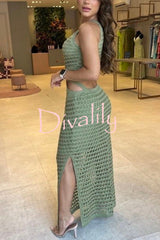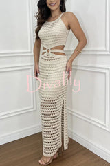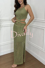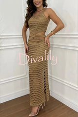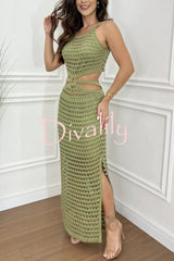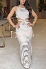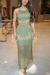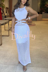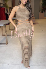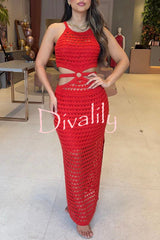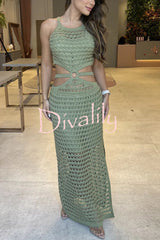Stunning gaze knit texture ring side waist cutout stretch maxi dress
