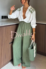 Tropical calling linen blend unique print loose blouse and elastic waist pocket pants set
