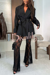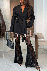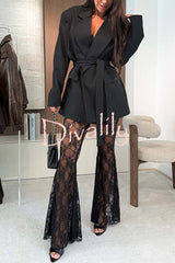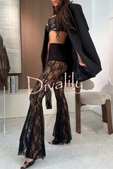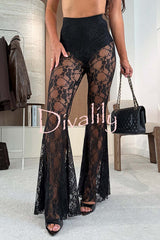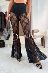 Chic moment floral lace high rise elastic waist fishtail hem stretch pants