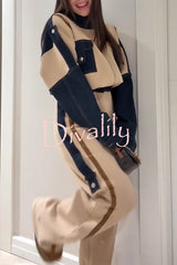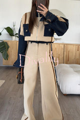 Chill whispers denim patchwork sweatshirt fabric striped elastic waist pocket loose pants