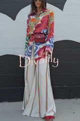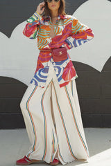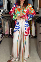 Ellah satin rainbow stripe print drawstring elastic waist pocket wide leg pants
