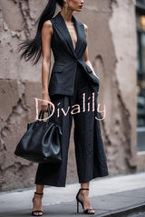 Fashion sleeveless lapel suit vest and casual pocket straight pants set