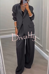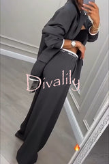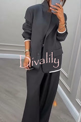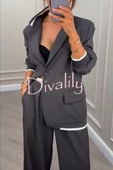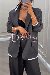 Fashion sports style ribbed colorblock lapel blazer and elastic waist pocket loose pants set