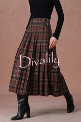 Yehudit plaid belt buckle design high rise pocket midi umbrella skirt