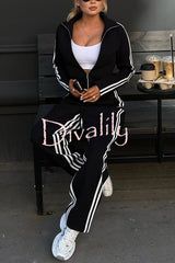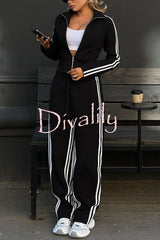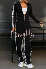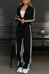 Fashionable sports style striped long-sleeved jacket and elastic waist casual pants set