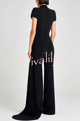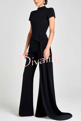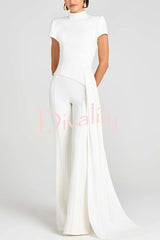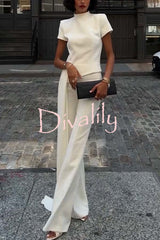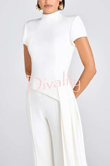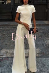 Pippa high neck short sleeve irregular drape hem top and elastic waist flare pants set