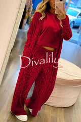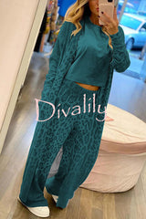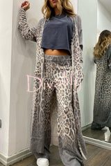 Comfort first leopard print pocket long sleeve cardigan elastic waist pants set