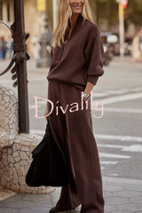Meet the autumn ribbed zipper neck sweatshirt and elastic waist pocketed loose pants set