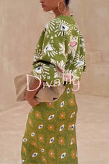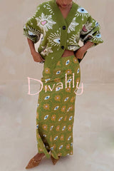 Mysterious magic satin eye heart pattern elastic waist drape maxi skirt