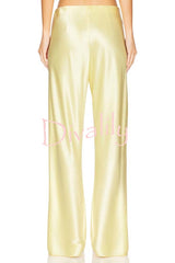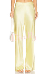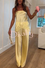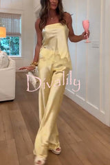 Odessa satin floral lace hem strapless tank and mid rise wide leg pants set