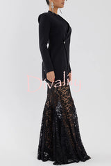 Poetic muse floral lace high rise elastic waist fishtail hem maxi skirt
