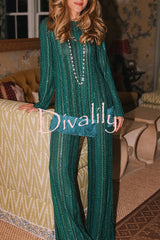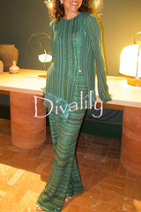 Relaxing time knit zigzag pattern tassel trim slit top and wide leg pants set