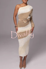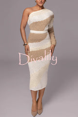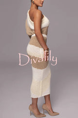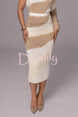 Soft autumn knit colorblock high rise elastic waistband stretch midi skirt