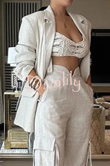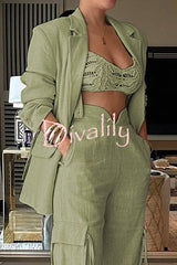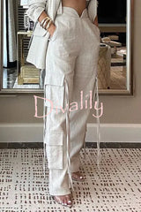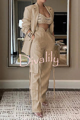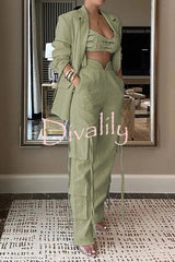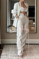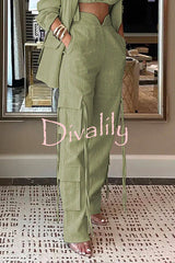 Stylish lapel long sleeve loose jacket and casual pocket lace-up straight leg pants set