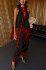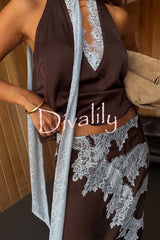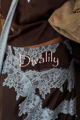 - This skirt is definitely bringing all the feel good dressing vibes! In a chocolate brown satin that skims your curves and creates an effortlessly chic silhouette. With gorgeous lace detailing along the front and across the hem it's perfect for dressing up or down. We've paired with the matching top and heels, creating a perfect wedding guest look!