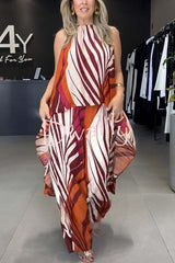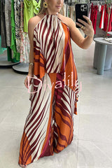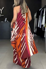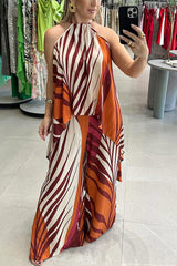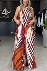 Edina unique print high low halter loose top and elastic waist pocketed wide leg pants set
