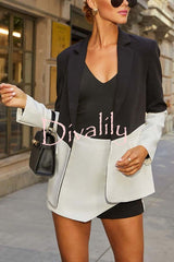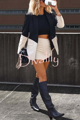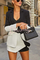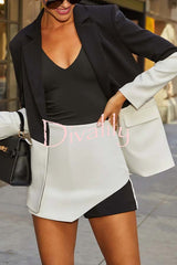 Enhance look colorblock long sleeve pocket lapel blazer and and mid rise mini skort set
