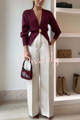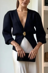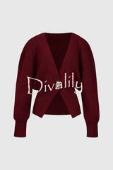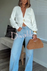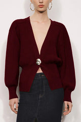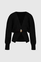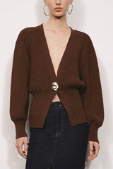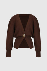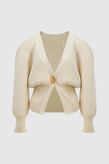 Only yours knit metal leaf shape button lantern sleeve relaxed cardigan
