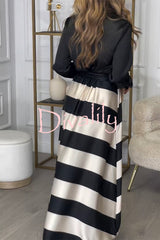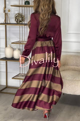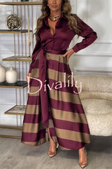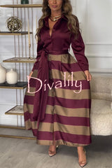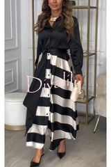 Lindsey satin colorblock contrast long sleeve belted shirt maxi dress