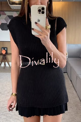 Solid color loose sleeveless casual knitted vest