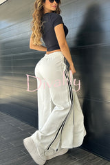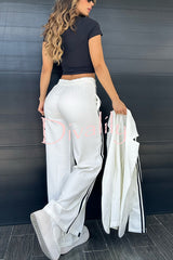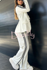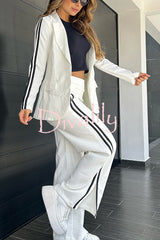 Sporty mixed formal striped trim lapel blazer and elastic waist pocket loose pants set