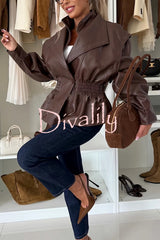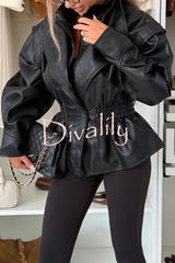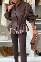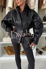 Play it cool faux leather single button elastic waist lapel moto jacket