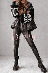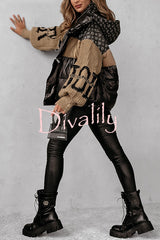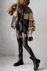 Stylish denim knit long-sleeved patchwork hooded pocket thickened jacket