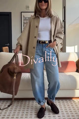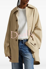 Timeless fashion button-breasted wide sleeve pocket twill a-line jacket