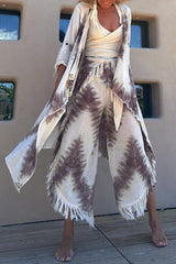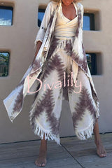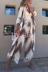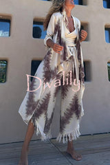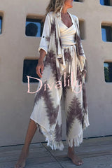 Kailani linen blend tie-dye print irregular hem duster kimono