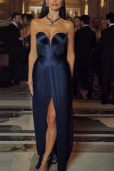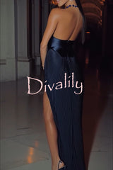 Stunning the audience plissé satin off shoulder drape slit gown maxi dress