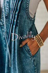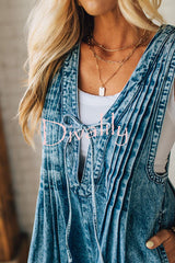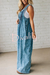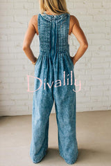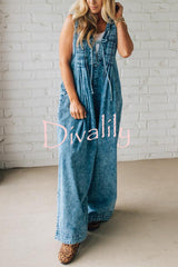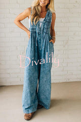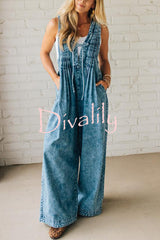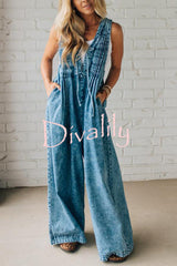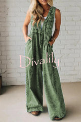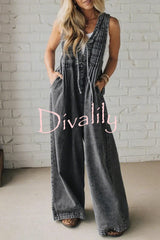 Fashionable and casual sleeveless v-neck lace-up loose pocket jumpsuit