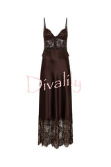 - Crafted from a luxurious silk blend with lace panels, this maxi dress seamlessly blends fluid movement with refined detailing. This stunning piece is perfect for elegant evenings, events, and special occasions.Our distinctive clothing will add instant style to your wardrobe .
