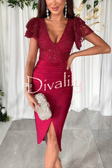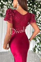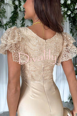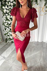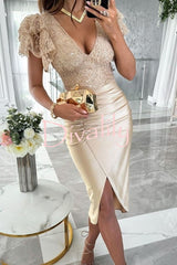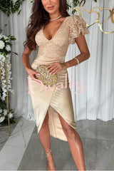 - Beautiful lace and lining on the upper add subtlety, while the lower body is made from flexible, elegant fabric with a refined sheen, ensuring comfort and unique style. The double-sleeved dress adds a touch of romance and elegance. It fits perfectly, flatters your figure and makes you feel special at weddings, baptisms, communions and other important moments. Precise workmanship ensures you will shine at every celebration. Add a little magic to your wardrobe with this stunning dress.