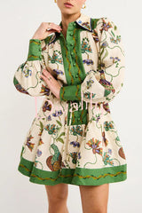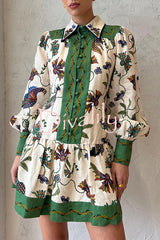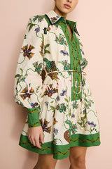 Celebrate everyday unique print color match balloon sleeve shirt mini dress