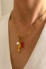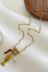 This adorable fish and pearl necklace is sure to keep you stylish and chic! Exquisitely crafted, it's sure to add a touch of freshness and sweetness to your wardrobe!