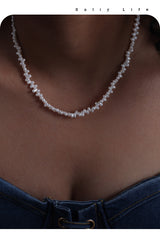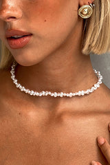 Stay stylish with this pearl necklace! This beautiful necklace is made of sparkling pearls. This stunningly beautiful necklace will bring a fresh and sweet look to your wardrobe!