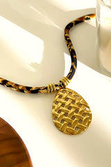 Stay stylish with this leopard print velvet rope stainless steel pendant! This beautiful necklace is made of velvet chain and stainless steel. This stunningly beautiful necklace will bring a fresh and sweet look to your wardrobe!